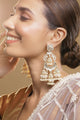 Gold-toned & white classic drop earrings, gold-plated, has kundan