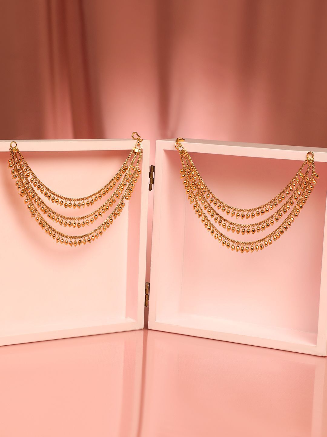 Dhiyona RJ 22K Gold Plated Multi Layer Beaded Ear Chain Pair Traditional Ethnic Jewelry
