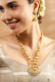 Dhiyona RJ 22K Gold-Plated Pendant Jewellery Set with Golden & Pearl Beads and Ruby Red Stone