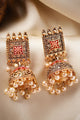 Dhiyona RJ 22K Gold-Plated Red Enamel Handcrafted Dome Shape Jhumkas with Pearl Drops