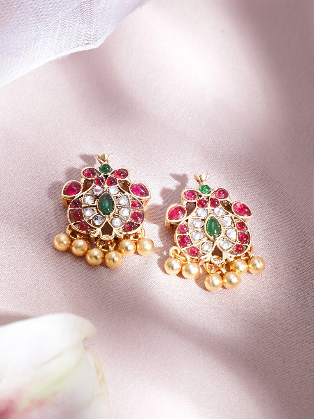 Dhiyona RJ 22K Gold-Plated Ruby & Emerald Kundan Studded and White Pearls Beaded Jewelery Set
