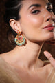 Dhiyona RJ Women's 22K Gold-Plated Ruby & Emerald Stone Studded Mint Green Beaded Chandbali Earrings