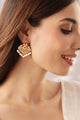 Earrings from Dhiyona RJ will add a fashion-forward twist to your jewellery collection. Wear this gold pair with slick black jeans and a pretty top for your next coffee date.