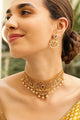 Dhiyona RJ Women's 22K Gold Plated Ruby Pink & CZ Studded Pearl Beaded Traditional Choker Jewellery Set