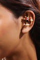 Dhiyona RJ 22K Gold-Plated Ruby Pink & White Kundan Lotus Design Ear Cuff with Pearl Beads
