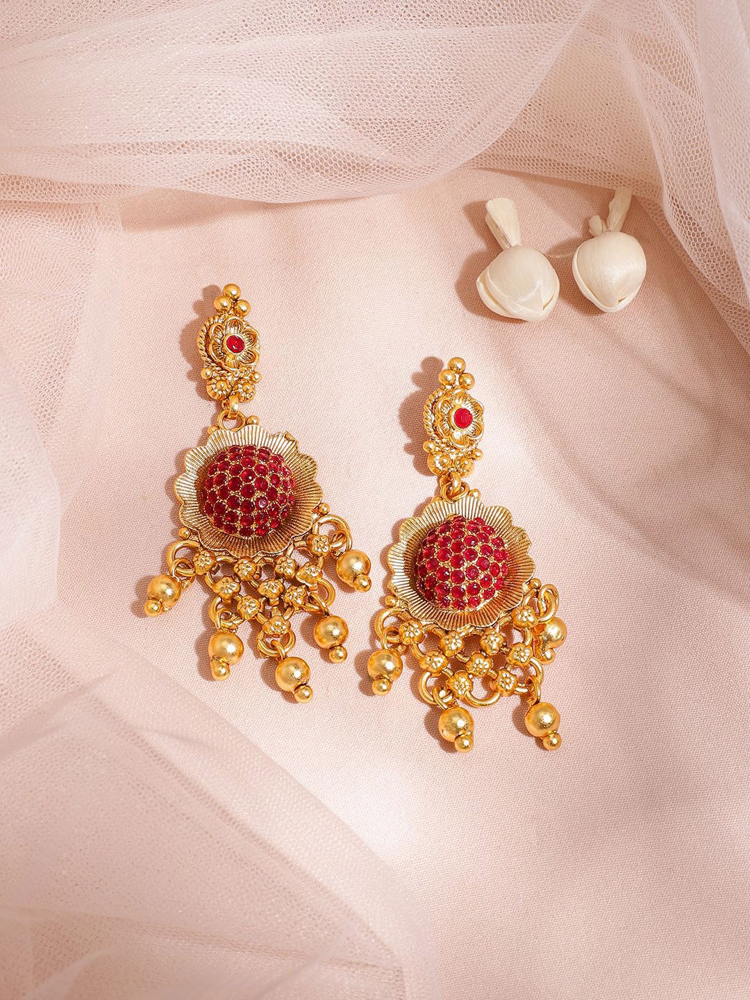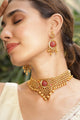 Dhiyona RJ 22K Gold Plated Ruby Red Stone Studded Gold Beaded Handcrafted Choker Necklace Set