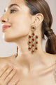Dhiyona RJ Women's 22K Gold-Plated Ruby Red & Zirconia Studded Long Dangle Earrings