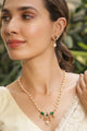 Dhiyona RJ 22K Gold-Plated White Pearl Beaded Necklace Set with Emerald & CZ Studded Pendant