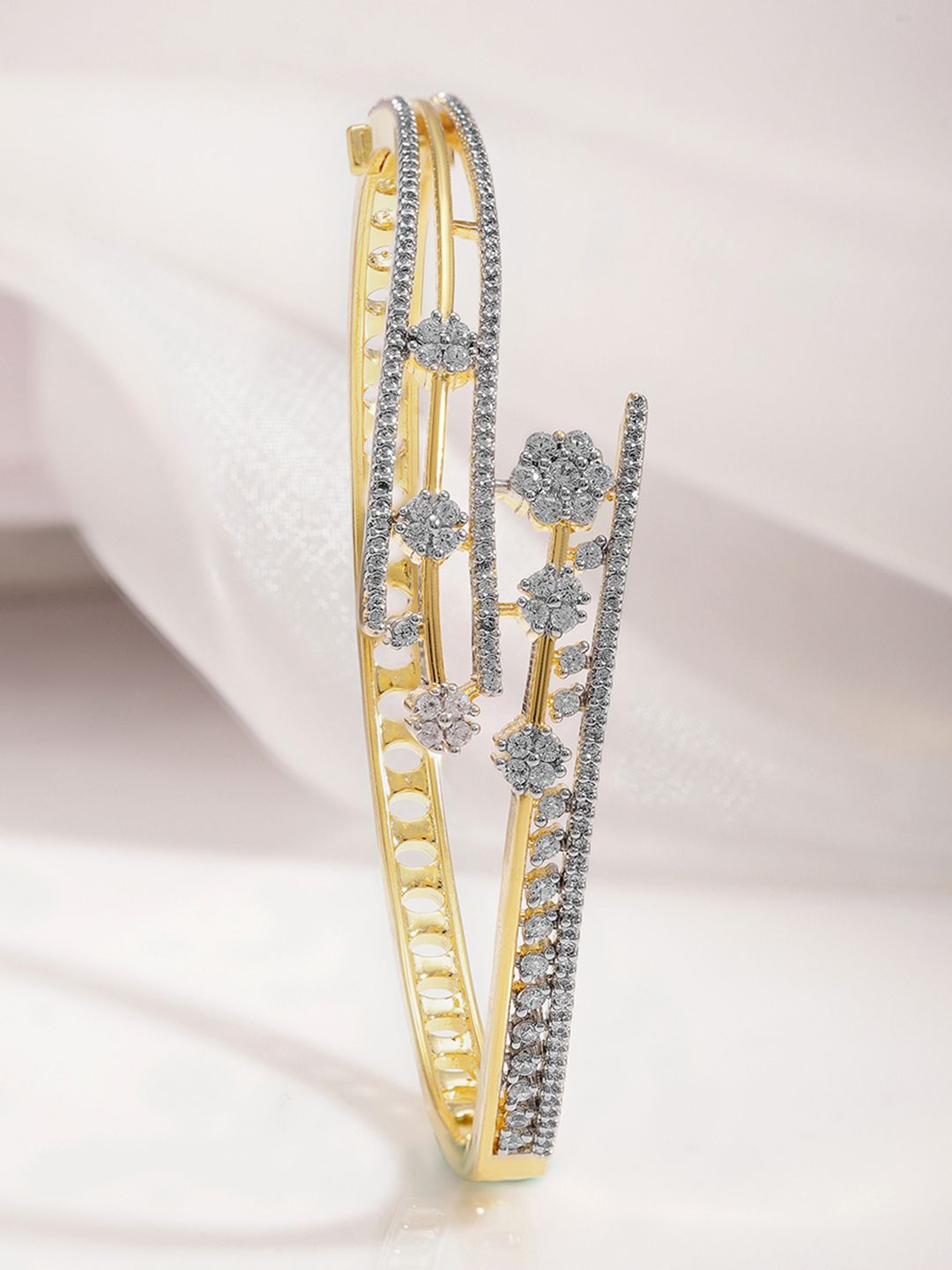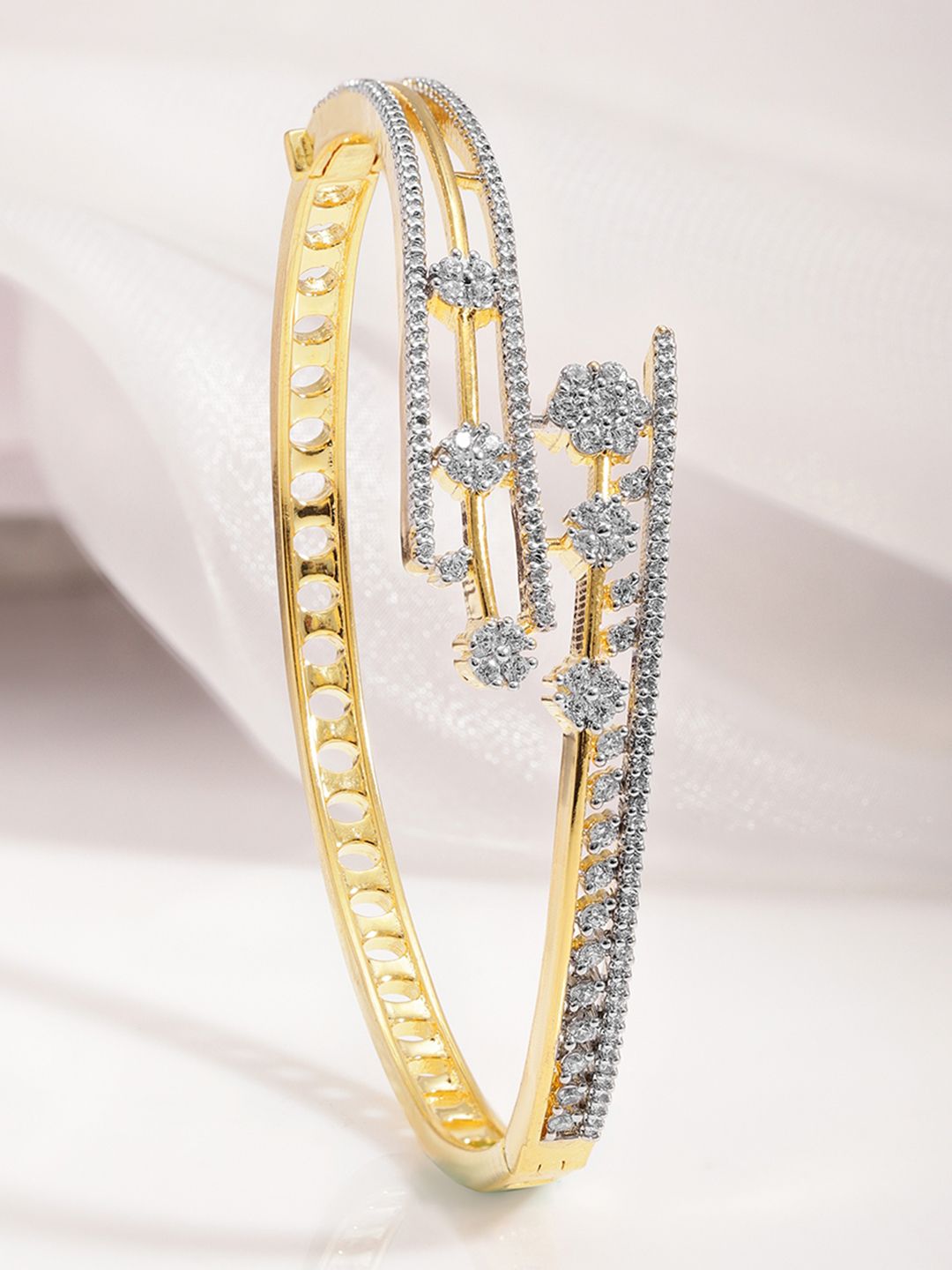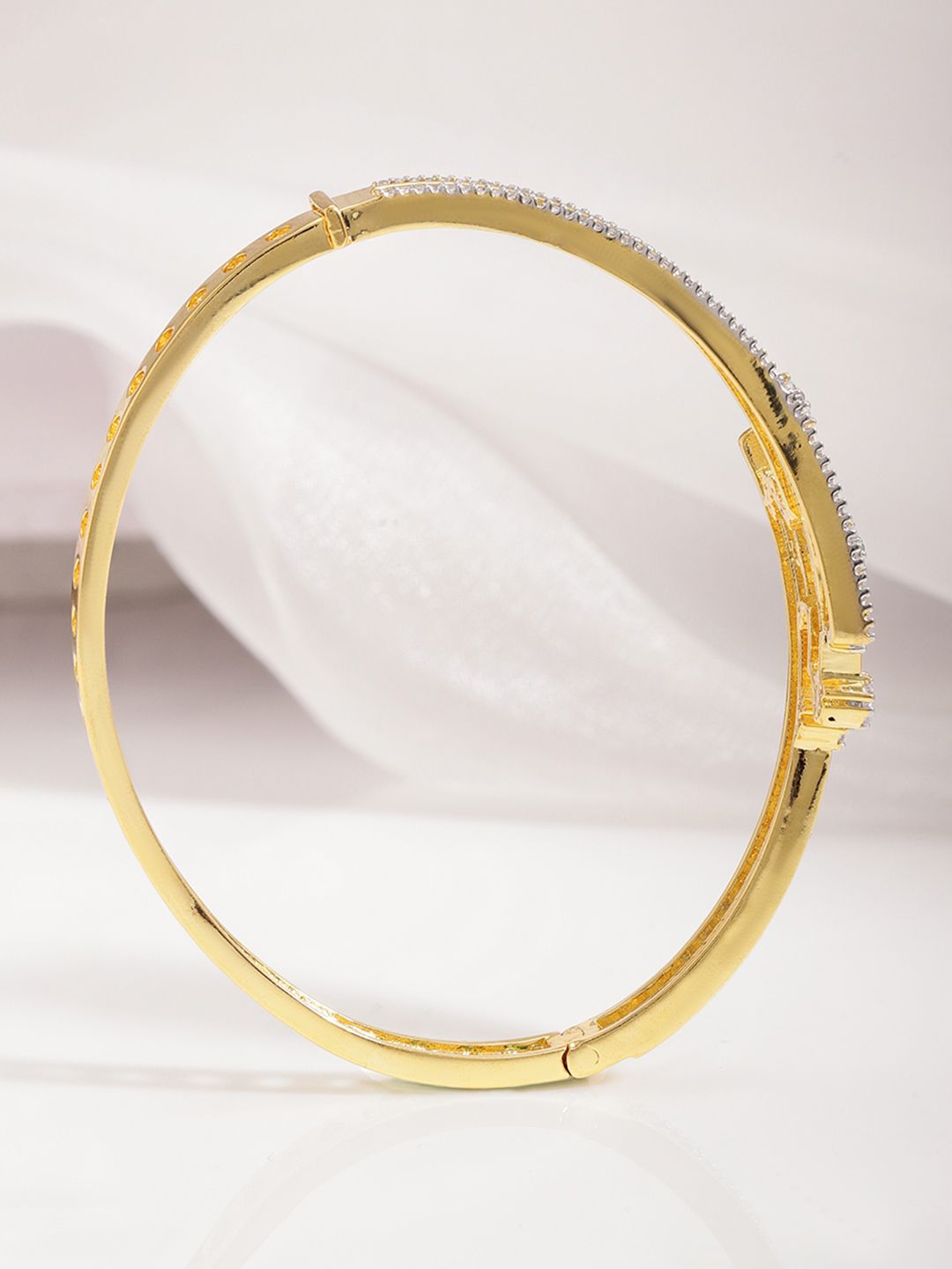 Dhiyona RJ 22KT Gold-Plated Cubic Zirconia Studded Bangle-Style Bracelet
