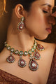 Dhiyona RJ 24K Gold-Plated Green & Black Enamel Border Ruby Pink & White Kundan Necklace Set