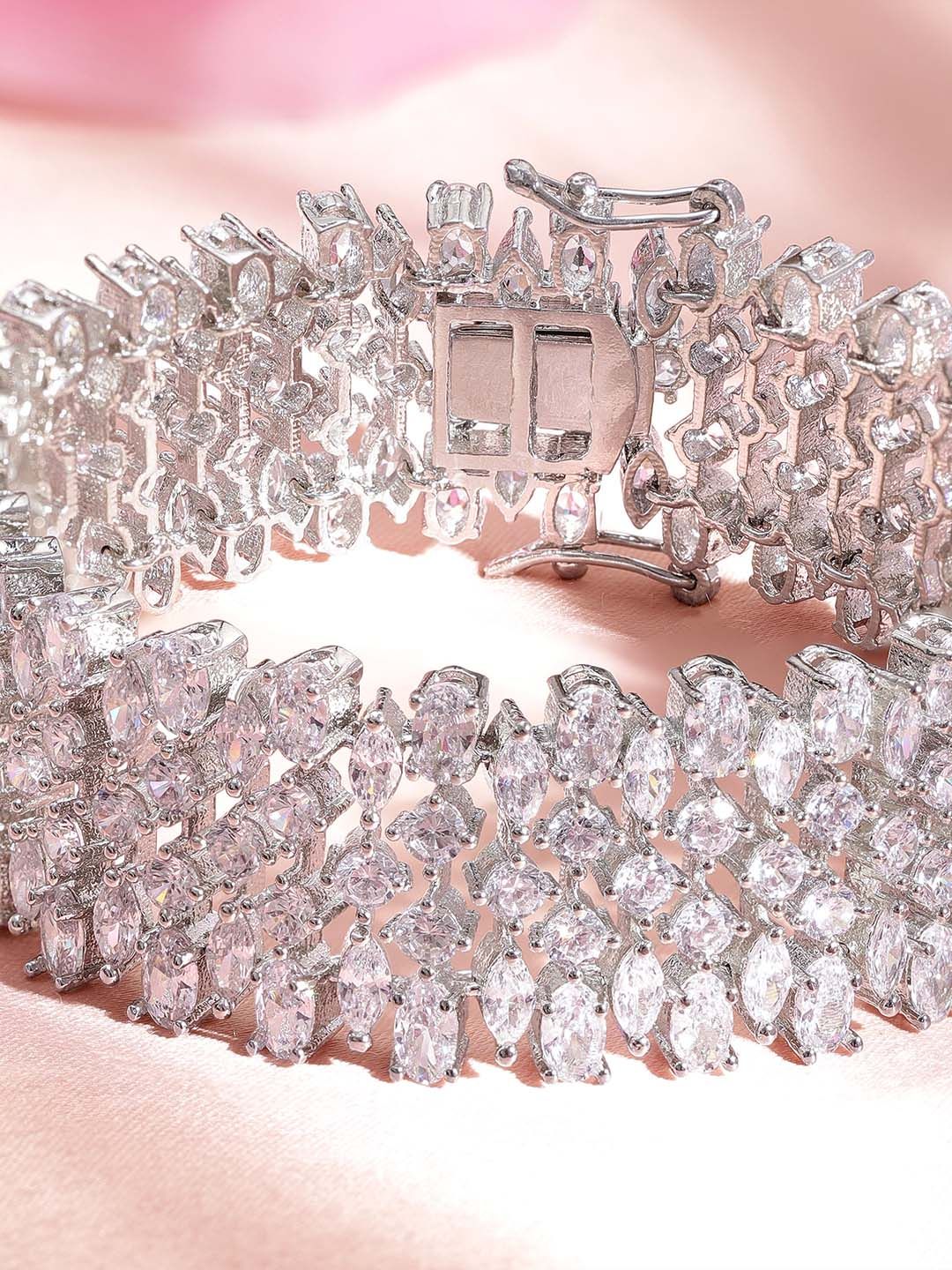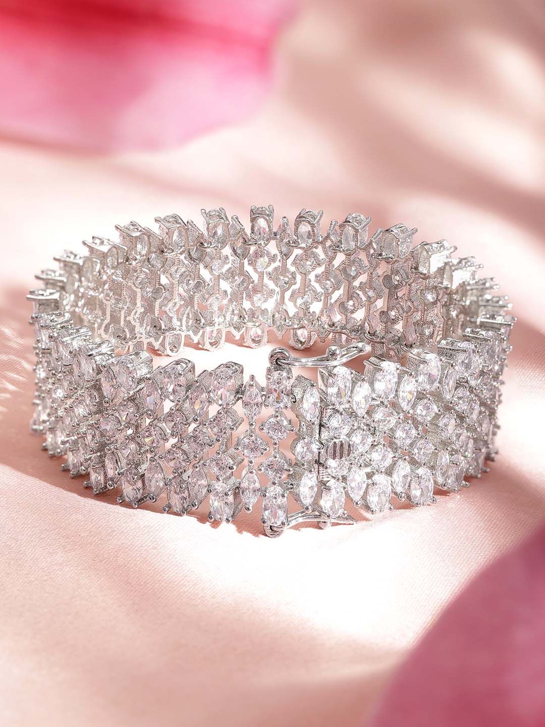 Dhiyona RJ Brass Cubic Zirconia Rhodium-Plated Bangle-Style Bracelet