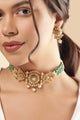 Dhiyona RJ Gold-Plated Emeral & Kundan Stone-Studded & Pearl Beaded Choker Jewellery Set