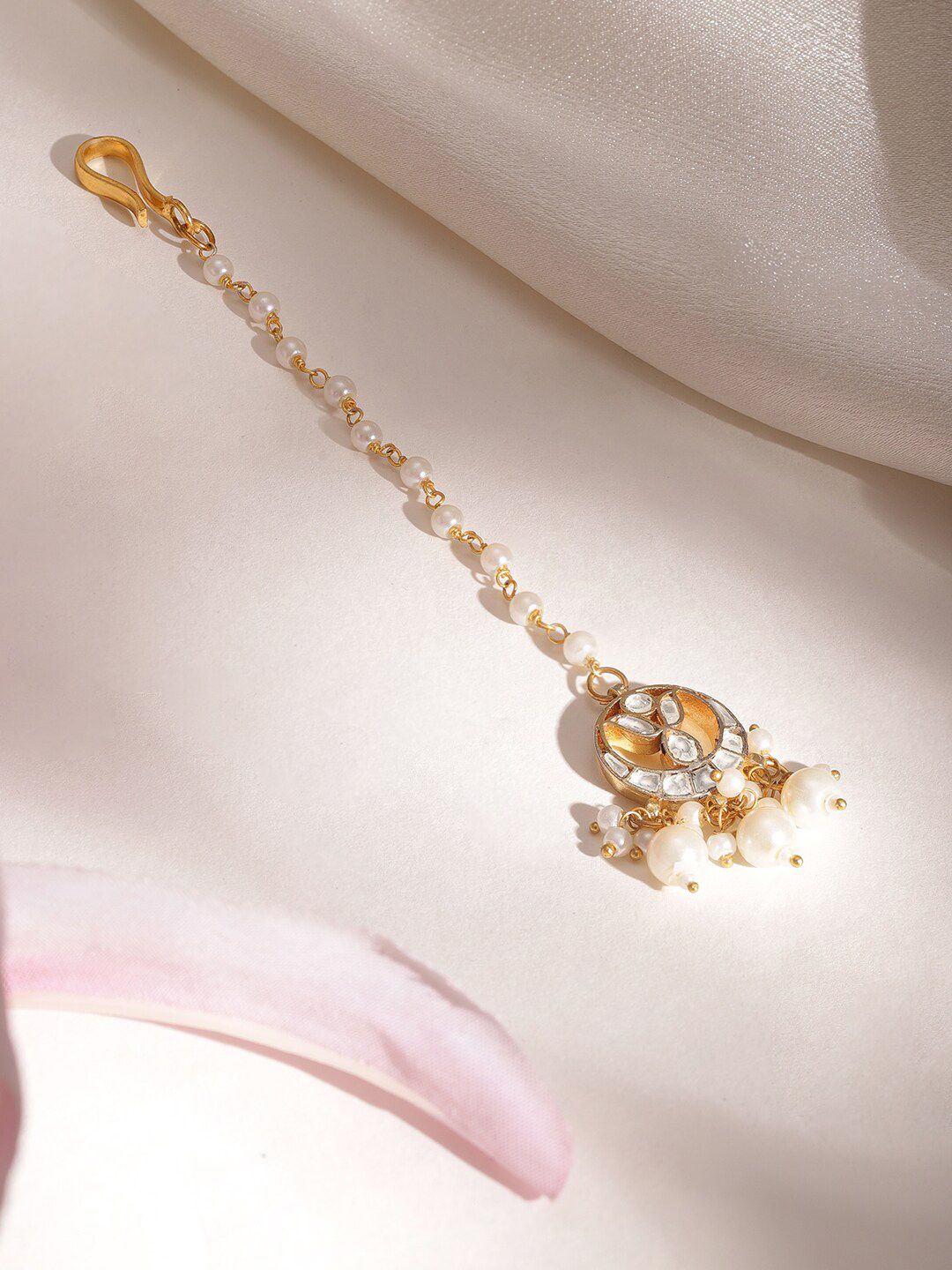 Dhiyona RJ Gold-Plated Kundan Studded Maang Tikka Head Jewellery