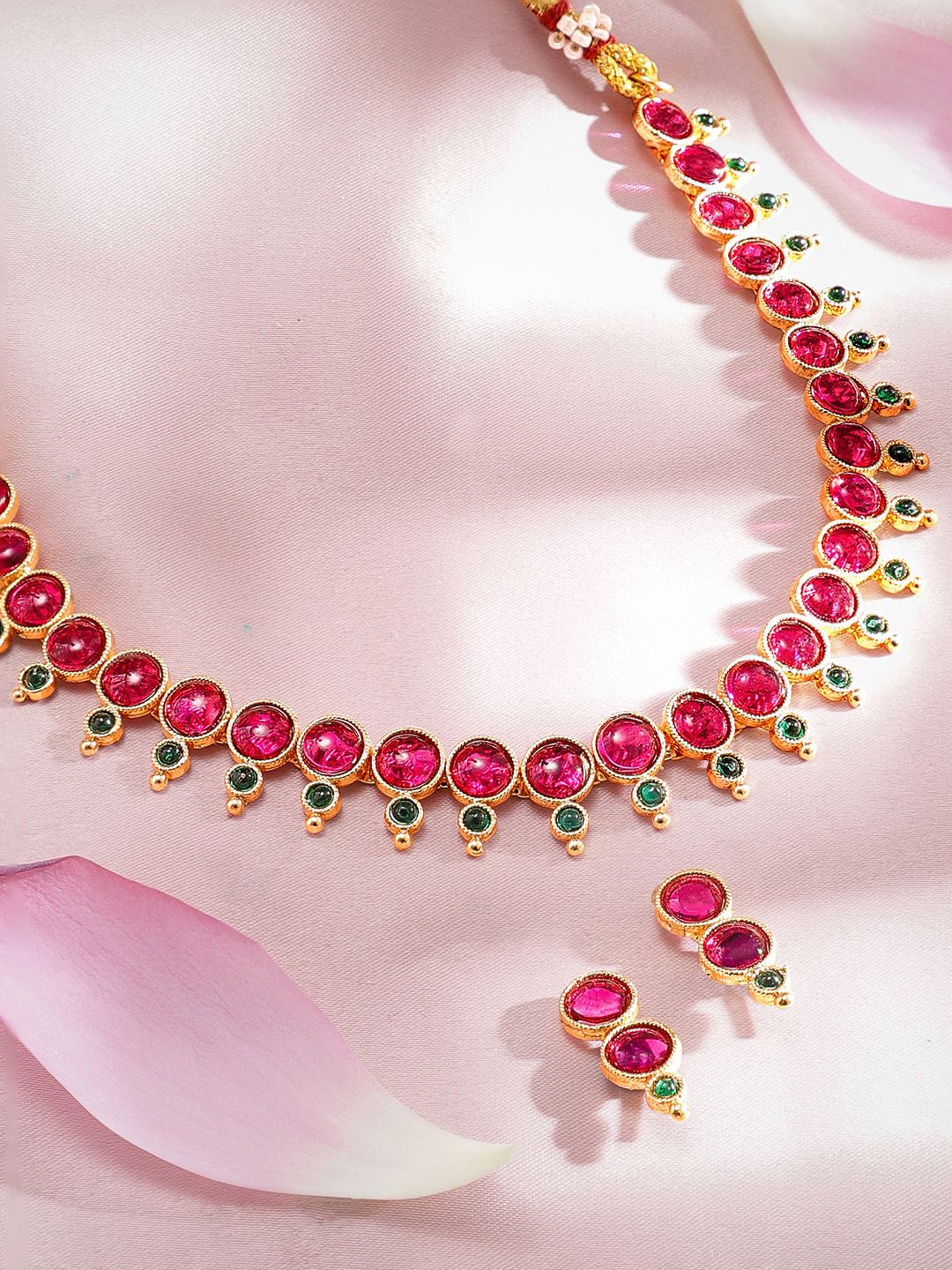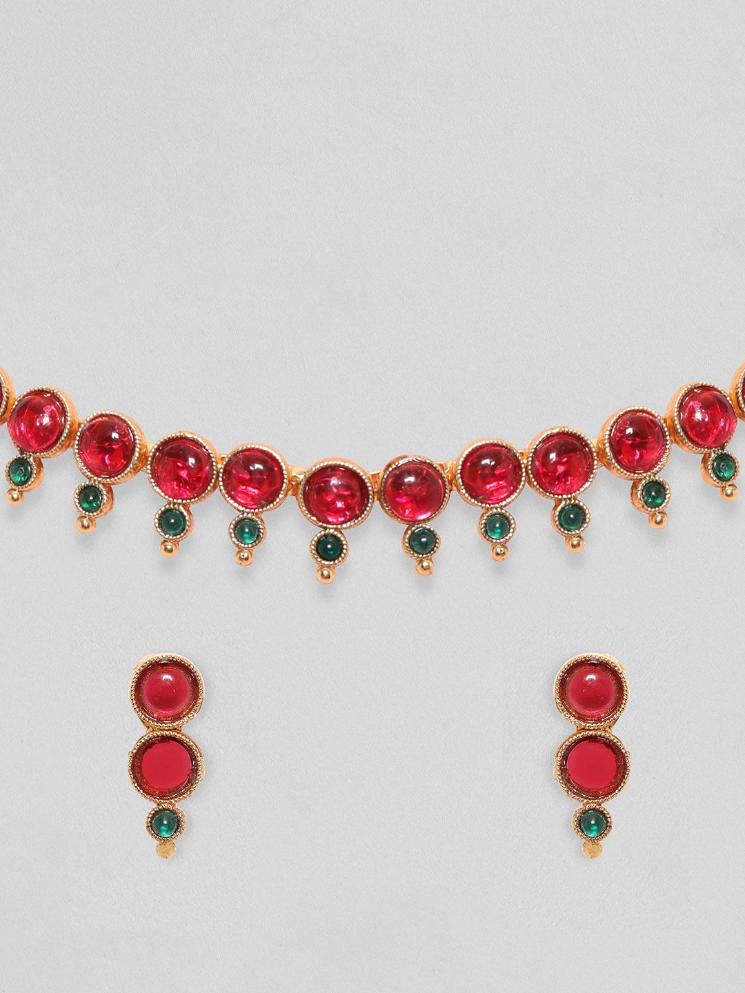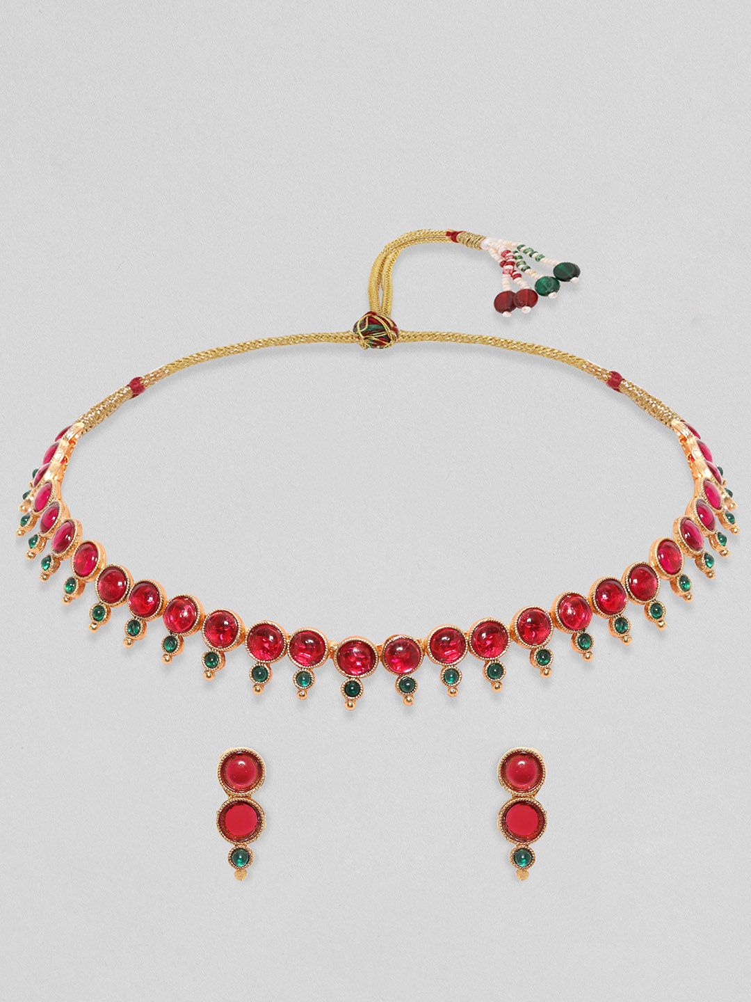 Dhiyona RJ Gold-Plated Red & Green Faux Ruby & Emerald Jewellery Set
