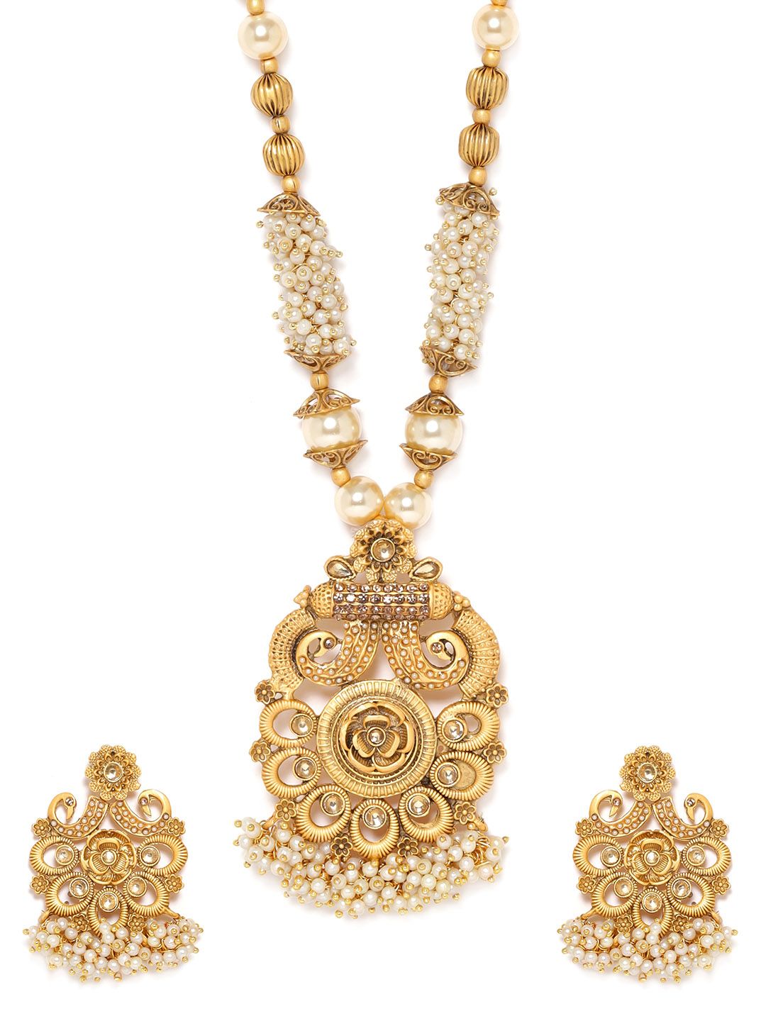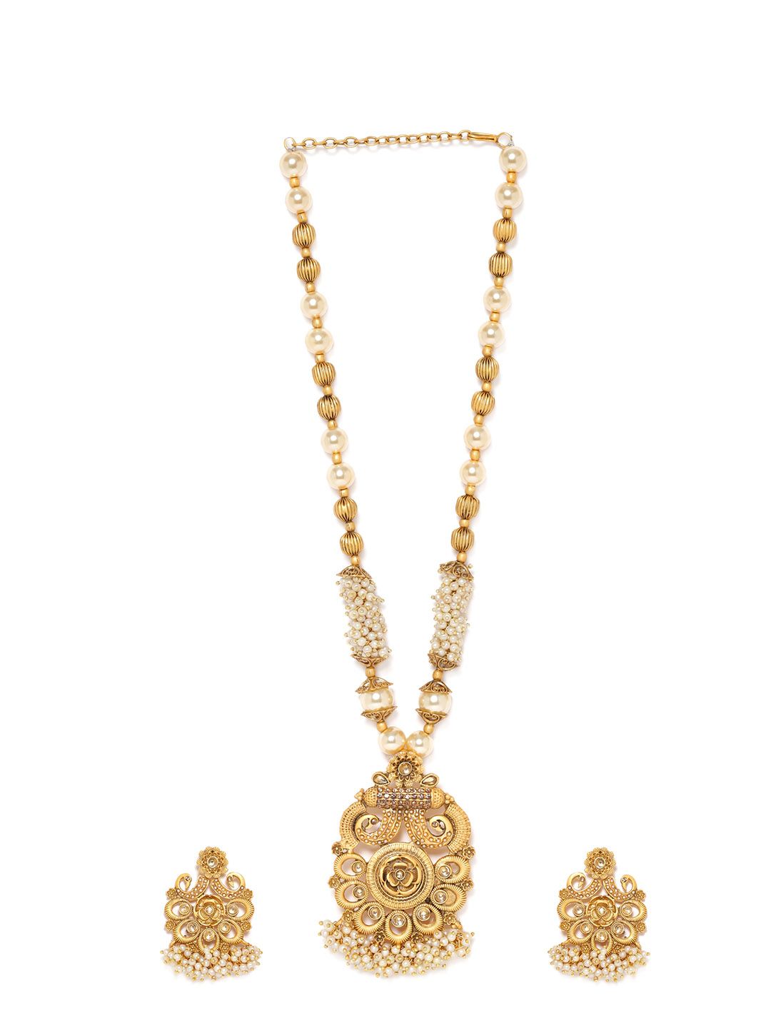 Dhiyona RJ Gold-Plated Stone Studded & Beaded Necklace Set