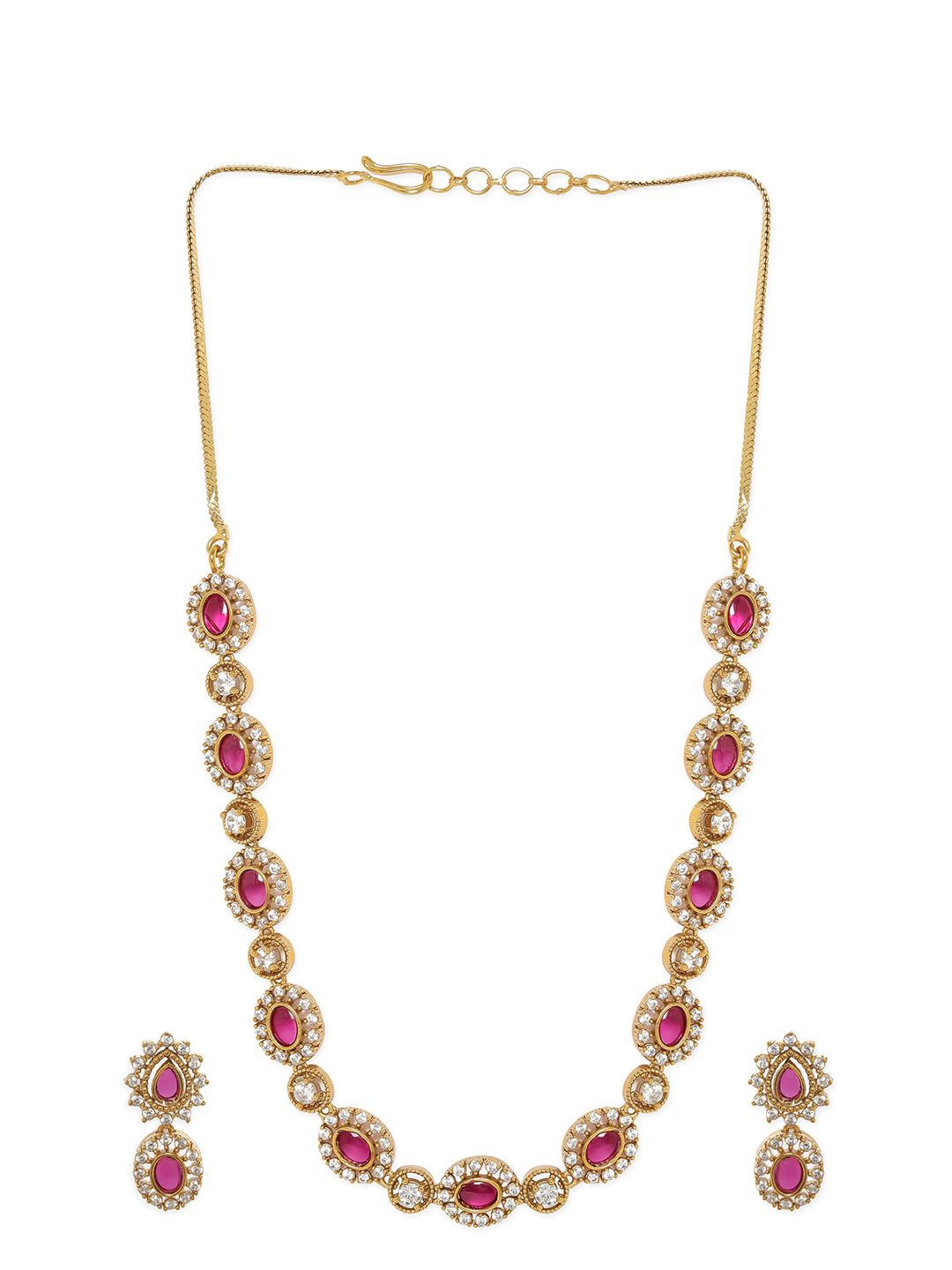 Gold-plated choker necklace, has pink & white stones by Dhiyona RJ details
