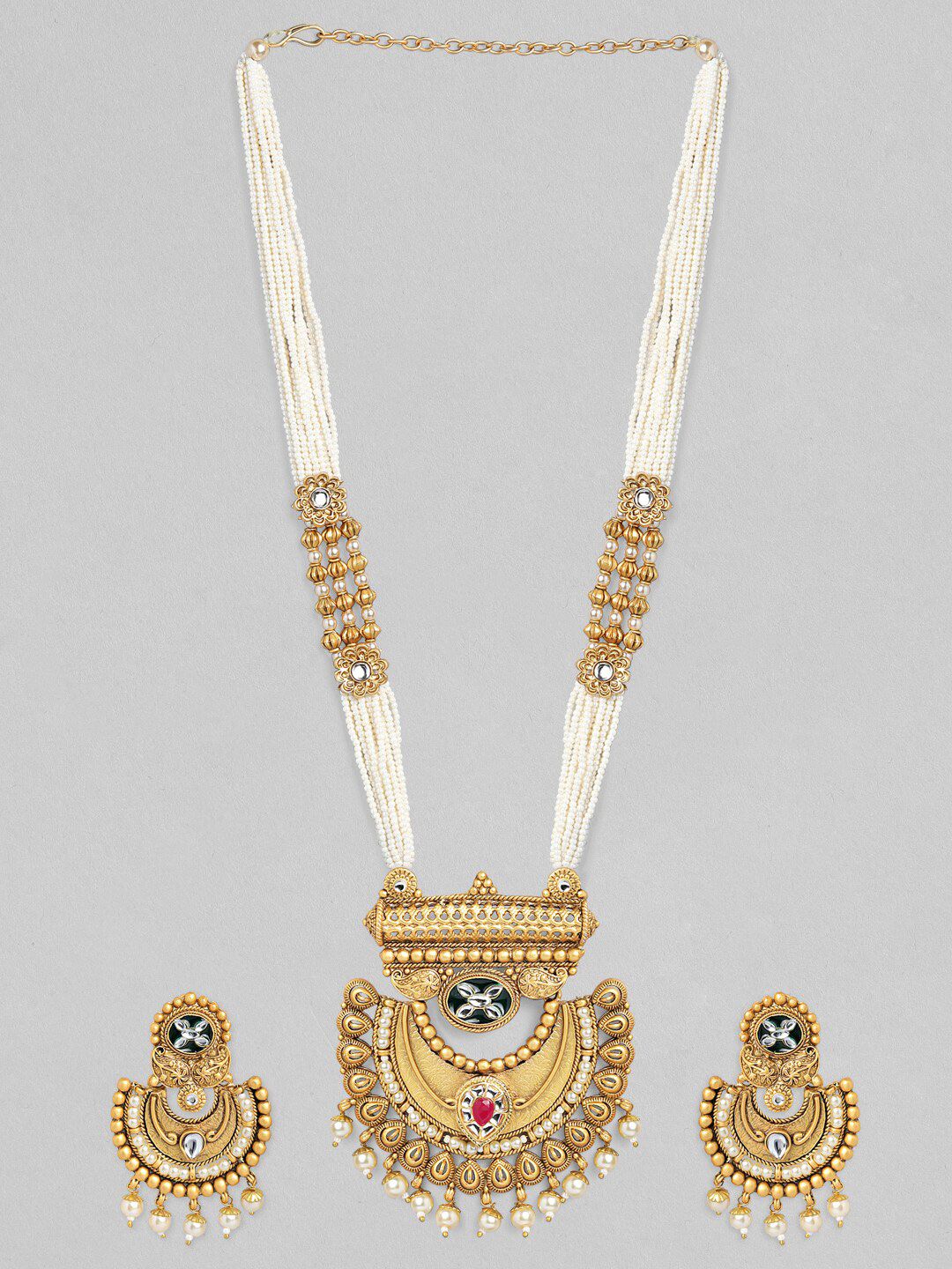 Dhiyona RJ Women's Gold-Plated White & Pink Kundan-Studded & Beaded Handcrafted Jewellery Set