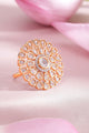 Dhiyona RJ Women's Gold-Toned CZ-Studded Floral-Shaped Cocktail Adjustable Ring