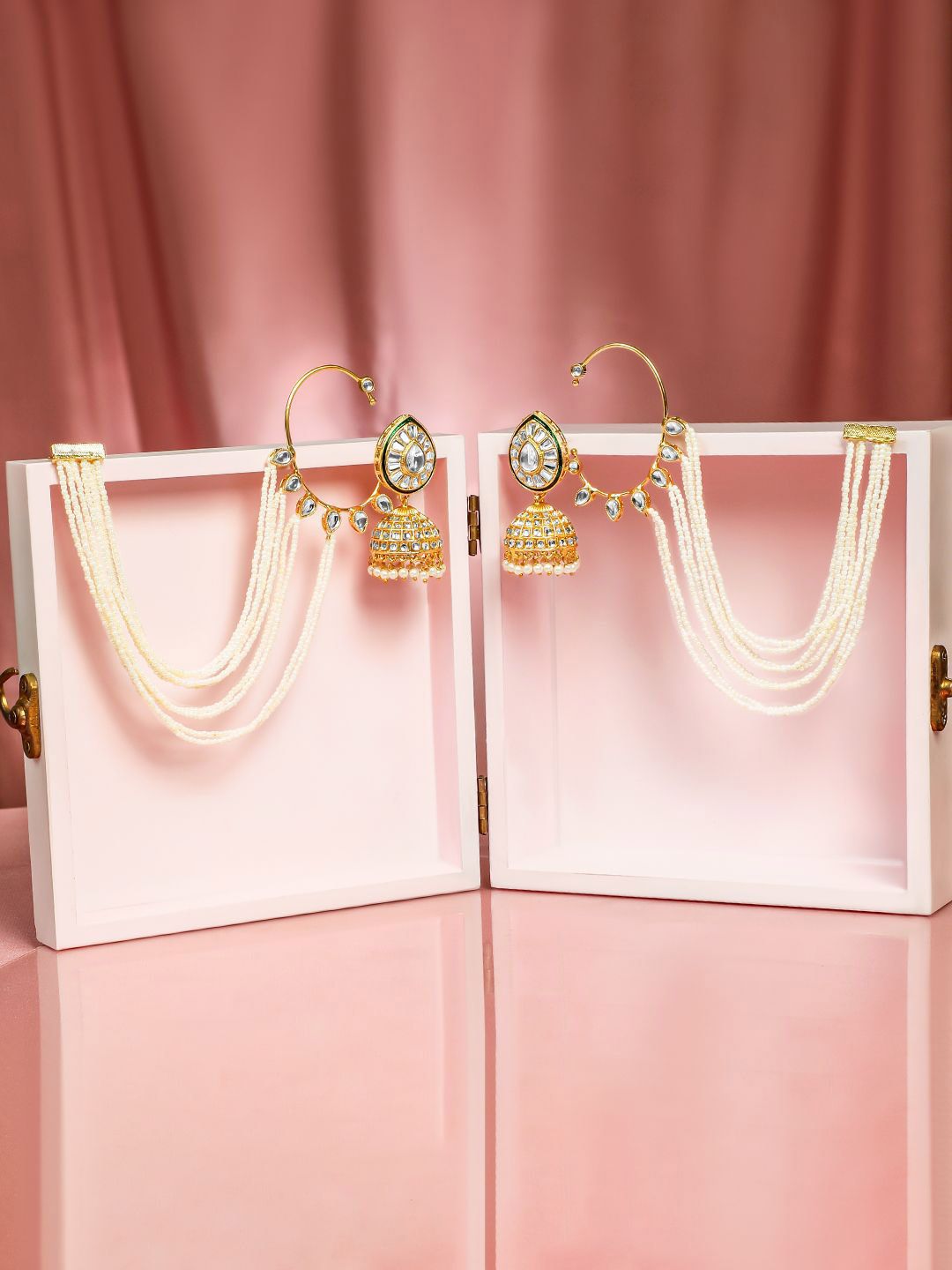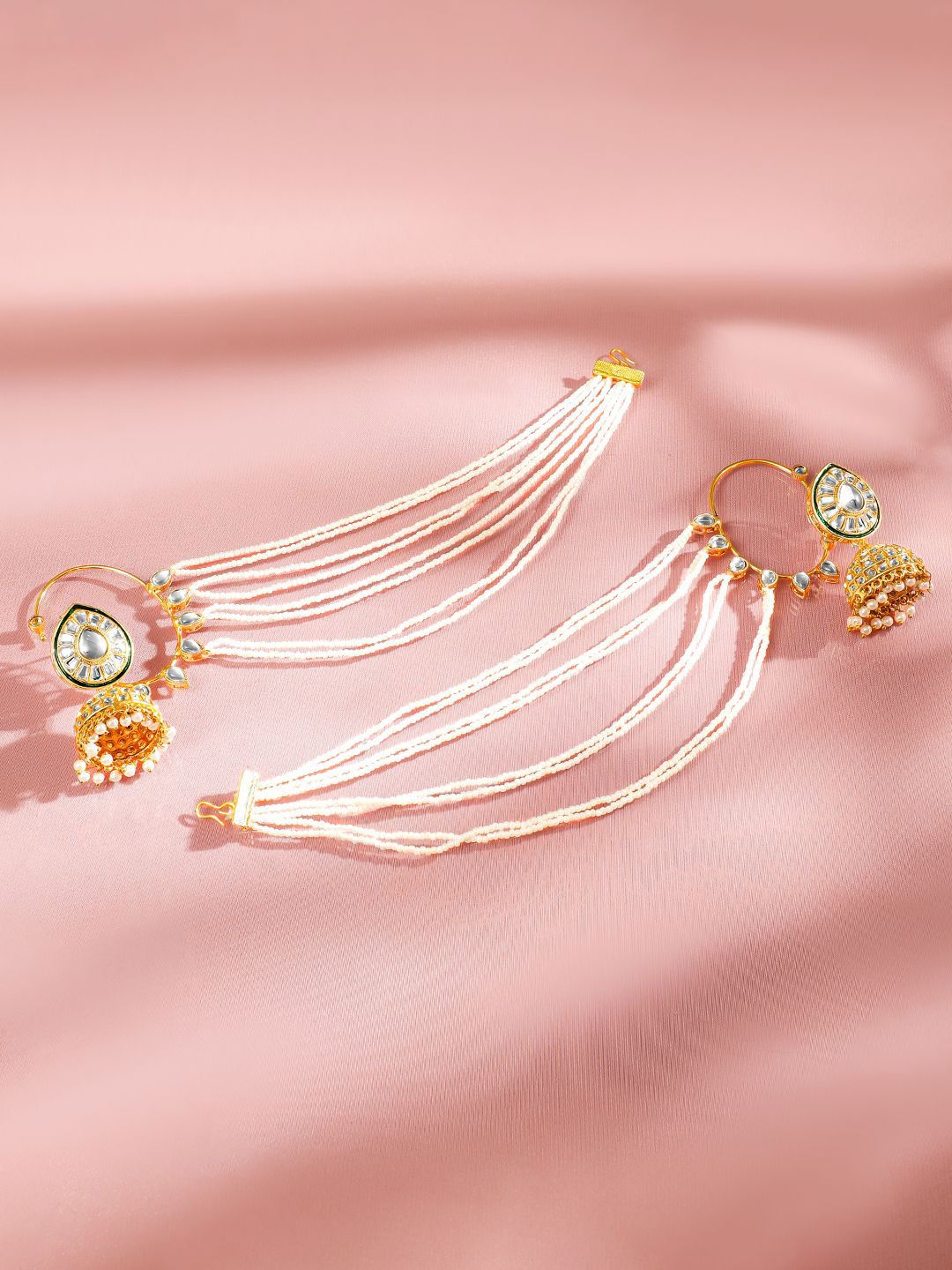 Dhiyona RJ Handcrafted 22K Gold Plated Kundan & Pearl Multi Strand Ear Cuff Jhumka Earring