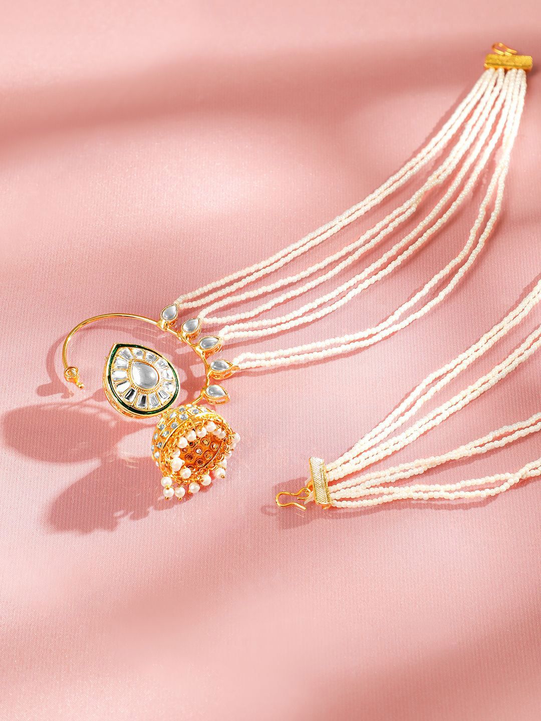 Dhiyona RJ Women's Handcrafted 22K Gold Plated Kundan & Pearl Multi Strand Ear Cuff Jhumka Earring