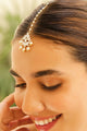 Off-white 24K gold-plated kundan studded & beaded handcrafted maang tikka, secured with S hook closure