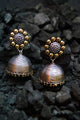 Oxidised silver and antique gold-toned dome-shaped jhumkas