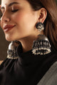 Dhiyona RJ Women's Oxidised Silver-Plated Antique Black & White Pearl Beaded Dome-Shaped Big Jhumkas