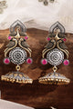 Dhiyona RJ Oxidised Silver Plated Dual Tone Gold and Silver Pink Stone Peacock Jhumka Earrings