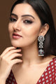 Dhiyona RJ Oxidised Silver-Plated Jhumka Earrings with Ruby Red Stones and White Pearl Beads