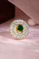 Dhiyona RJ Premium 22k Gold-Plated Green Emerald and Zirconia Studded Adjustable Finger Ring