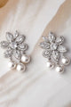 Silver-toned, white floral drop earrings, rhodium-plated, has american diamond