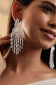 Dhiyona RJ Rhodium Plated AAA Cubic Zirconia Studded Statement Chandelier Earrings