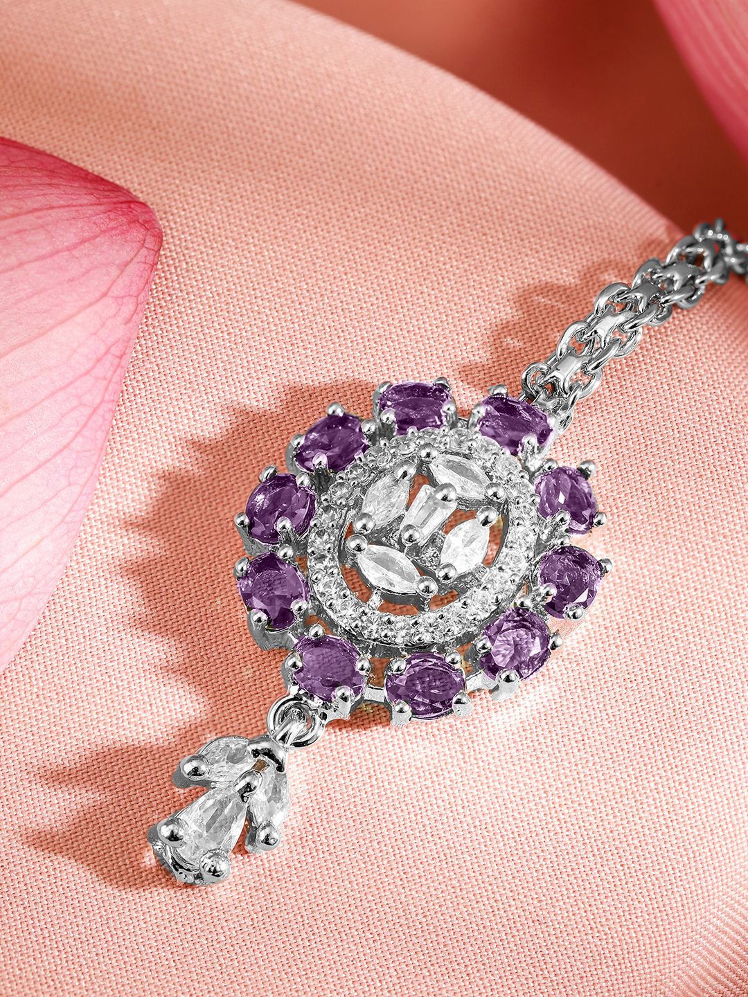 Dhiyona RJ Women's Rhodium-Plated Artificial Stones Studded Maang Tikka