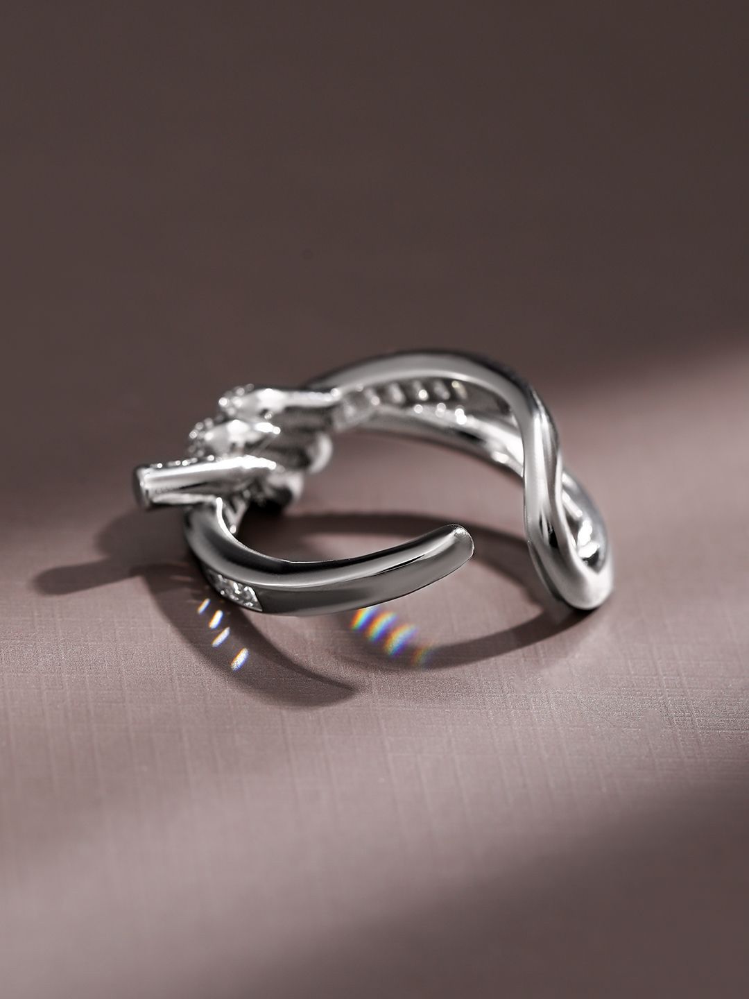 Dhiyona RJ Rhodium Plated Baguette & Pave Cubic Zirconia Studded Knot Design Openable Ring