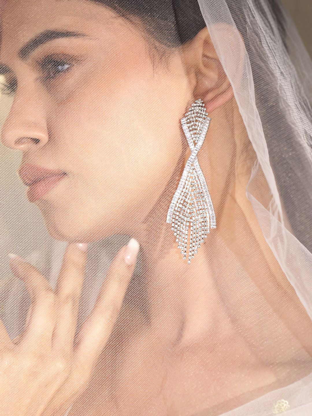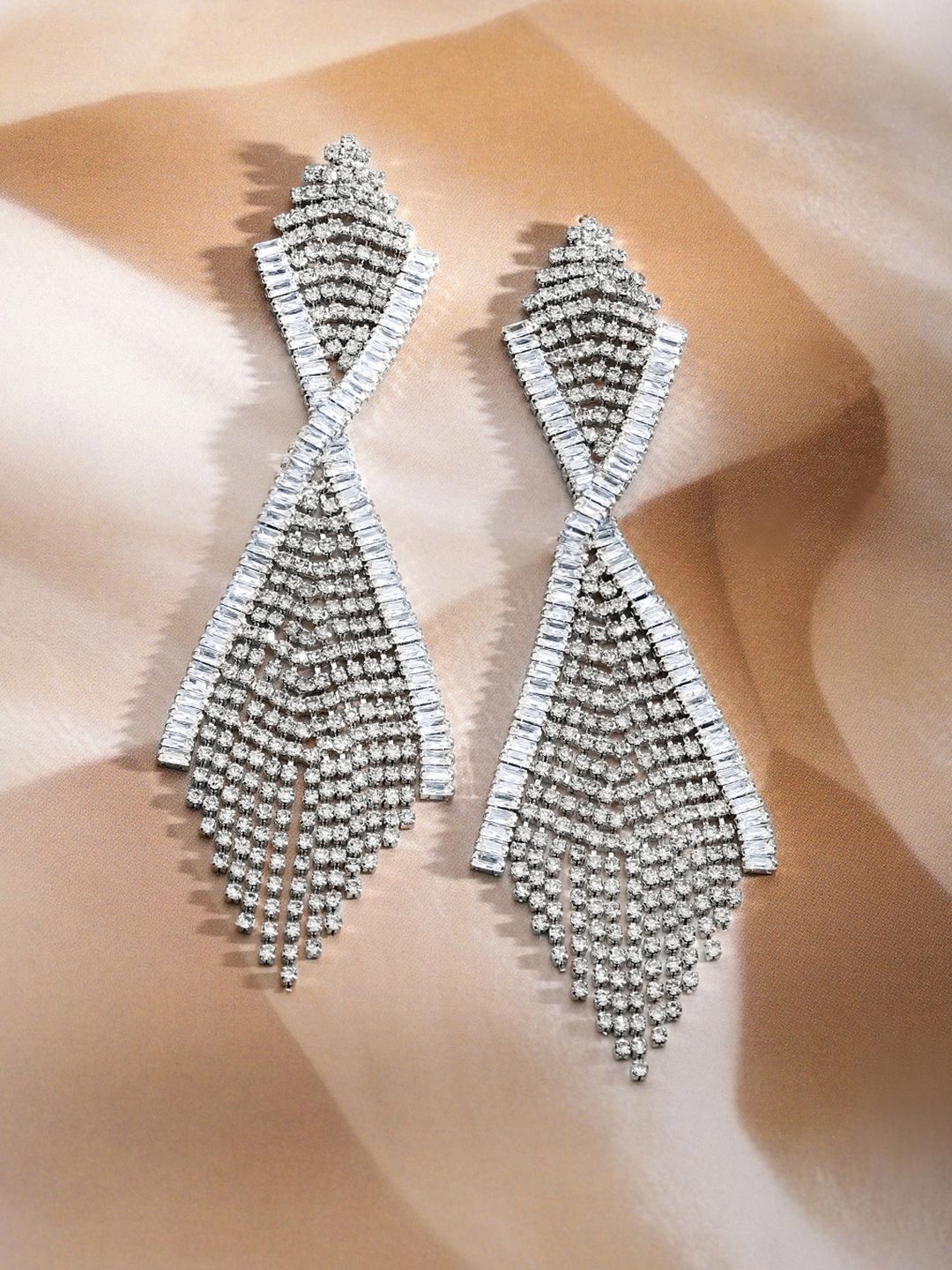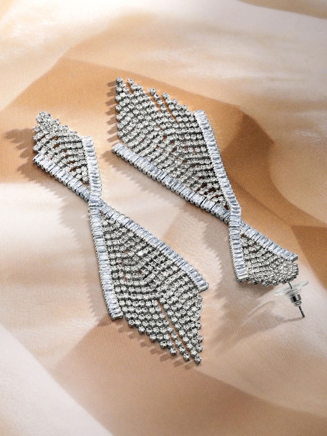 Dhiyona RJ Rhodium-Plated Brass Crystal Studded Classic Drop Earrings