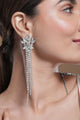 Dhiyona RJ Women's Rhodium Plated Crystal AD & Zirconia Studded MultiLayer Shoulder Drop Earrings