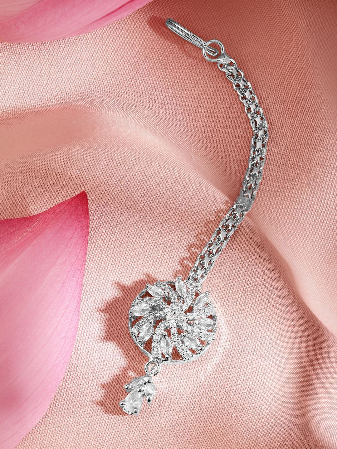 Dhiyona RJ Rhodium-Plated Cubic Zirconia Studded Maang Tikka Head Jewellery