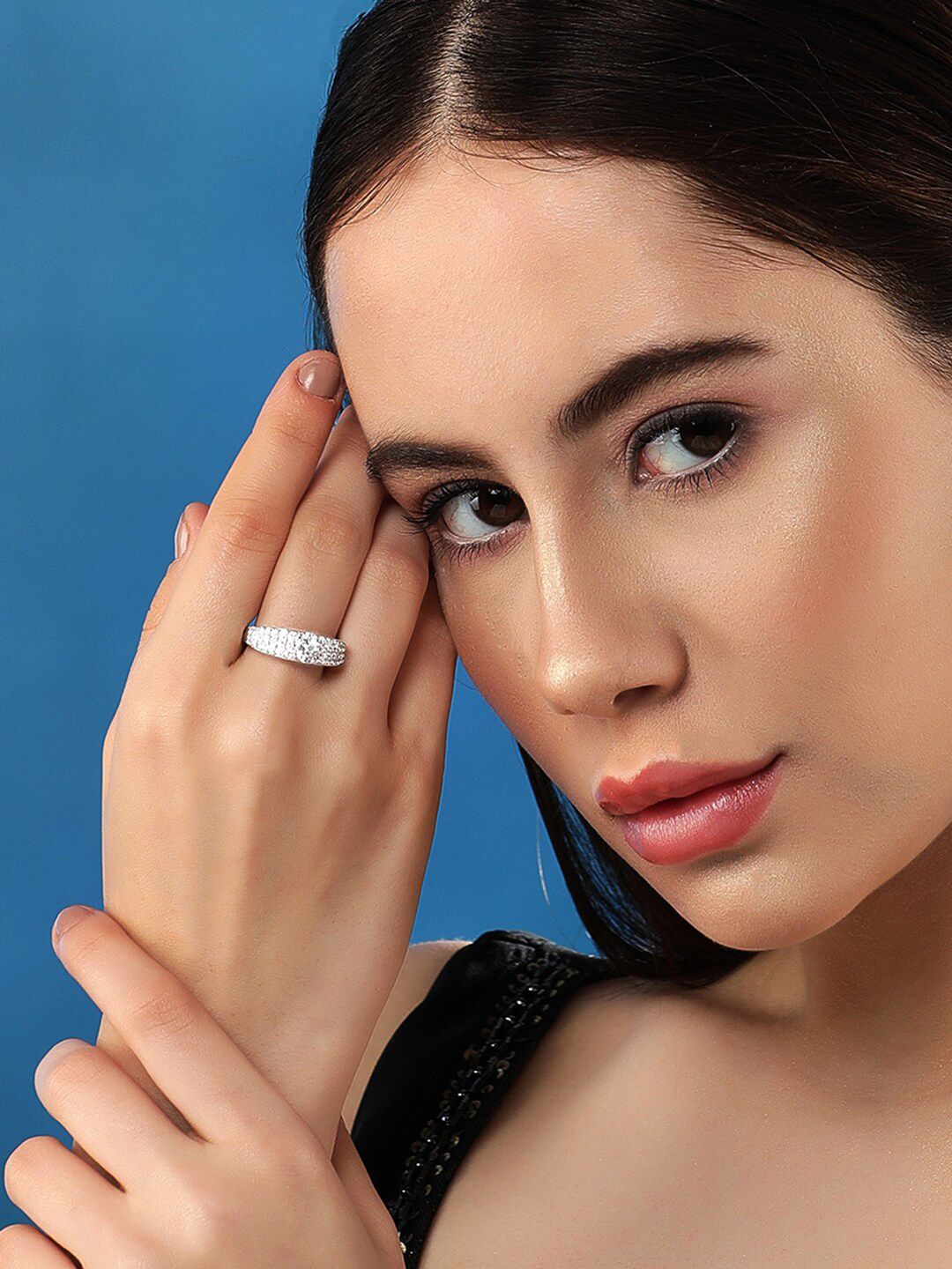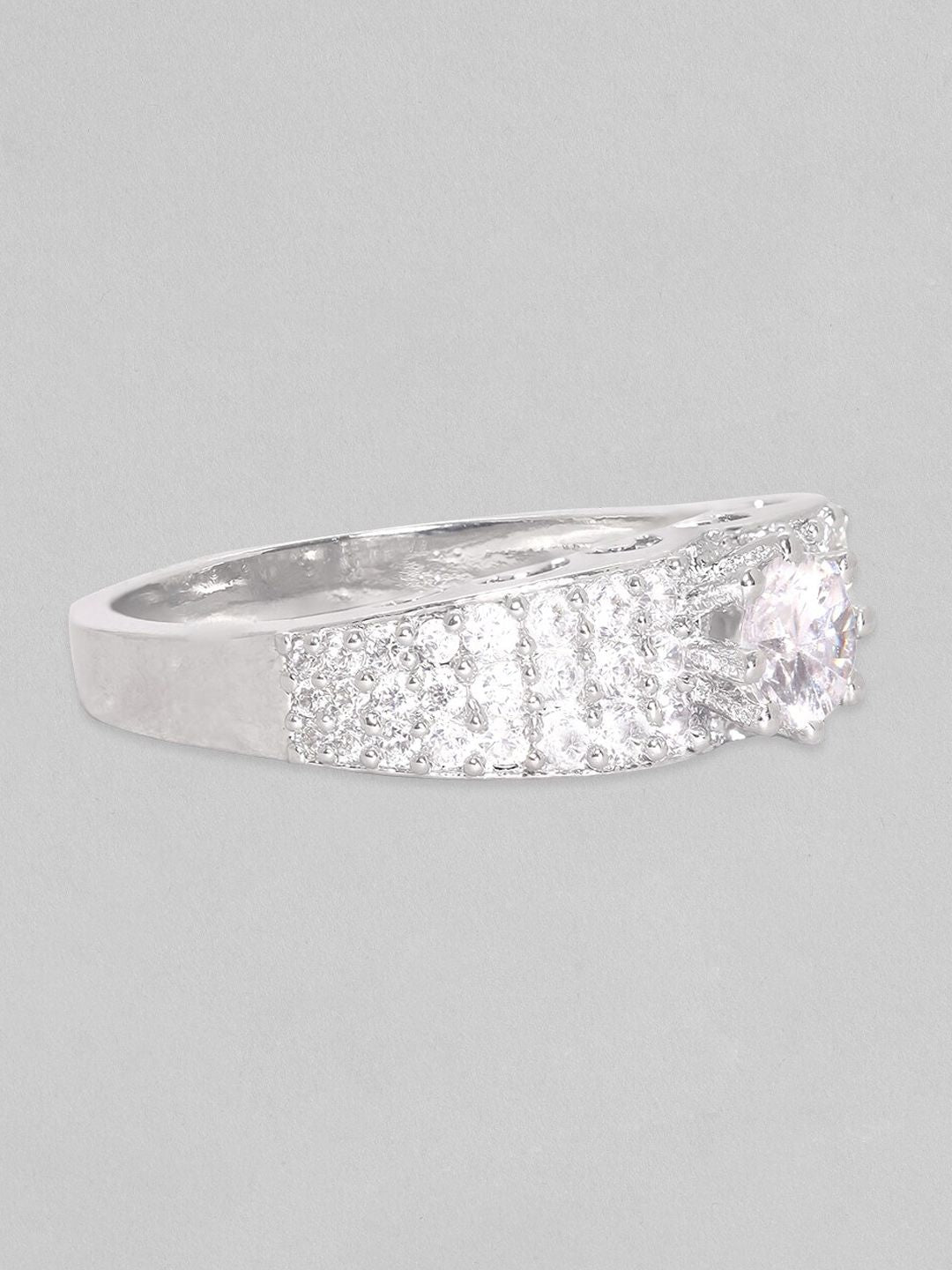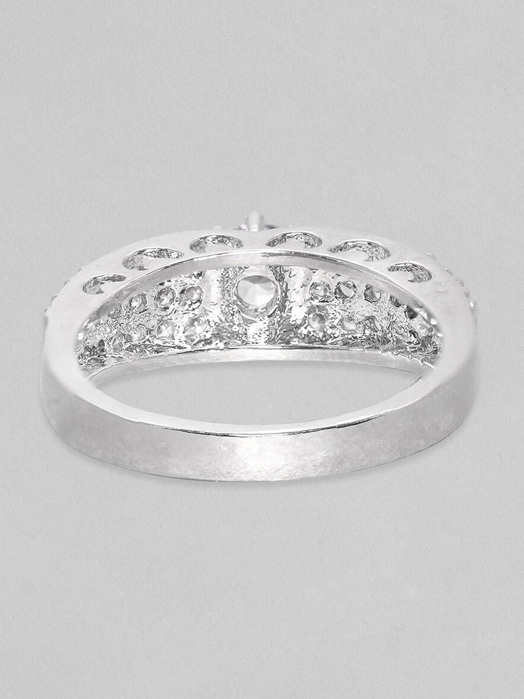 Dhiyona RJ Rhodium-Plated CZ-Studded Finger Ring