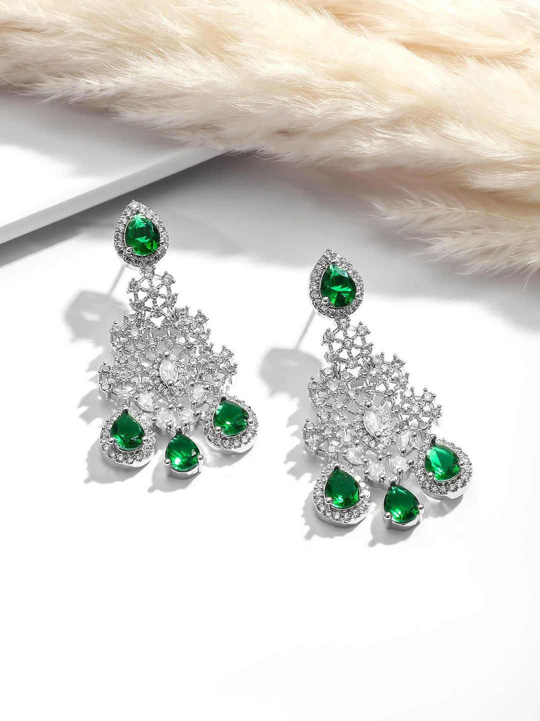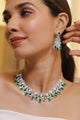 Dhiyona RJ Rhodium Plated Emerald Green & White Cubic Zirconia Studded Statement Jewellery Set
