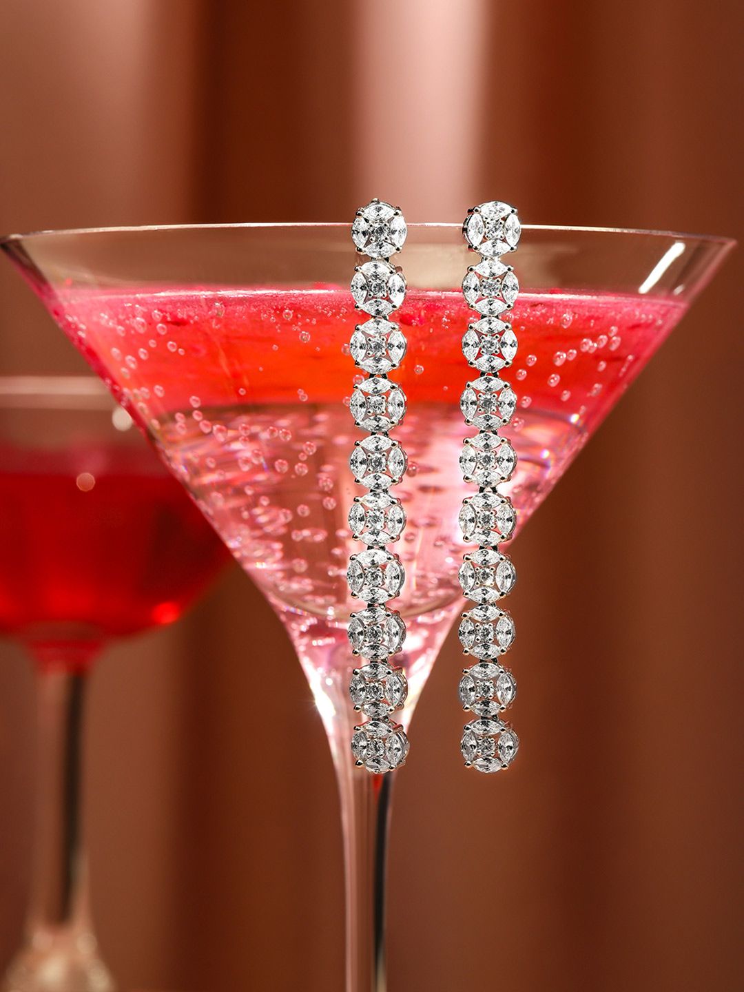 Dhiyona RJ Rhodium Plated in Silver Toned Zirconia Studded Contemporary Long Drop Earrings
