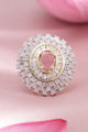 Dhiyona RJ Rhodium-Plated Pink AD & White Zirconia Studded Adjustable Ring
