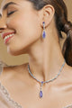 Dhiyona RJ Women's Rhodium Plated Purple Sapphire Teardrop Necklace Set with AD & Cubic Zirconia