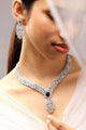 Rhodium-plated necklace, has blue & white cubic zirconia-studded with intricated details
