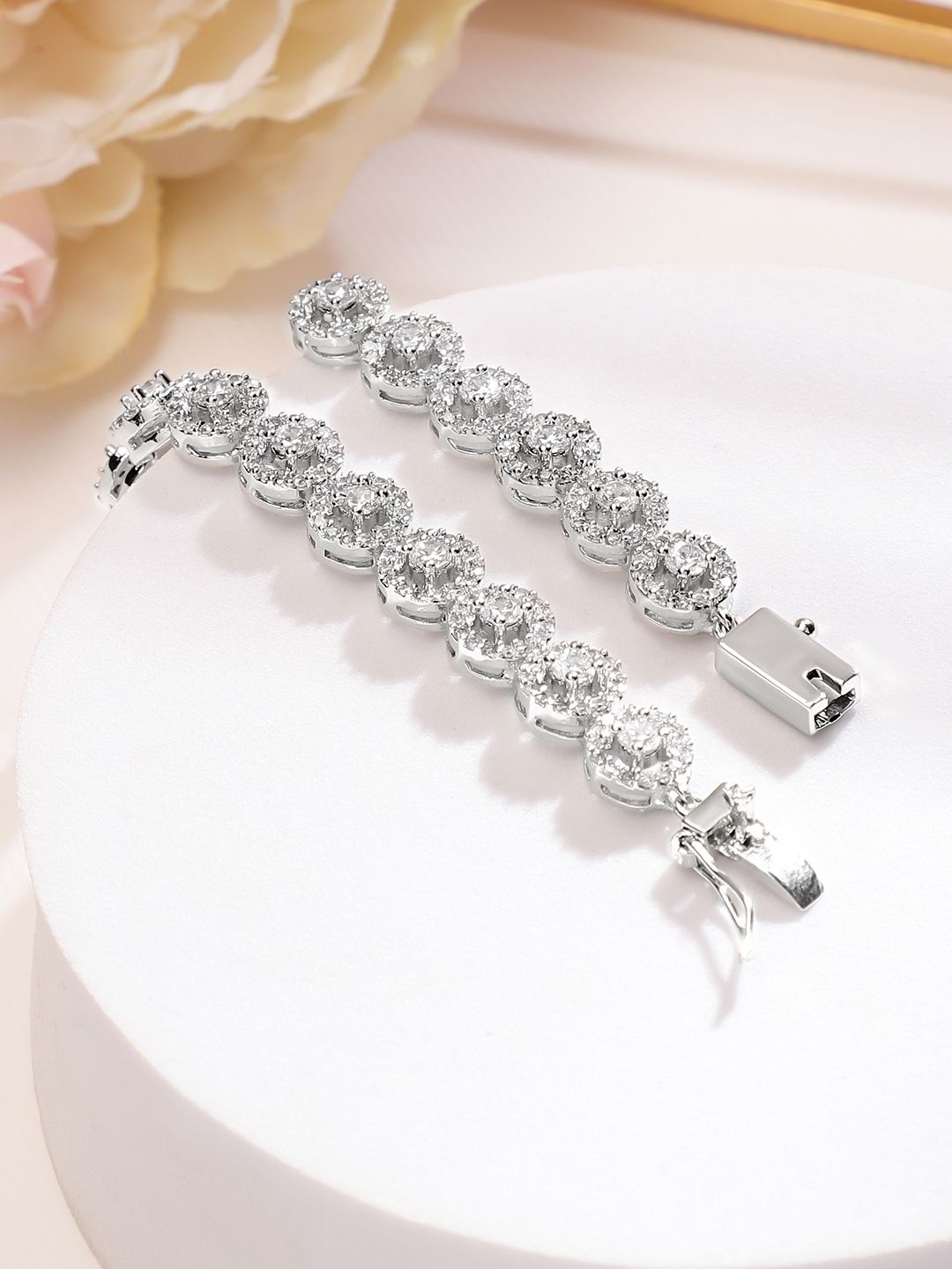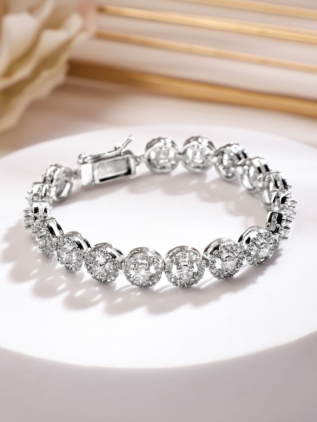 Dhiyona RJ Rhodium Plated Round Design Sparkling Cubic Zirconia Studded Premium Tennis Bracelet