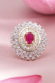 Dhiyona RJ Women's Rhodium-Plated Ruby Pink AD & White Cubic Zirconia Studded Adjustable Finger Ring