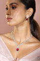 Dhiyona RJ Rhodium-Plated Ruby Red & White Cubic Zirconia Studded Necklace Set