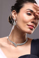 Dhiyona RJ Silver-Plated AAA Cubic Zirconia Studded Leaf-Inspired Statement Choker NecklaceSet