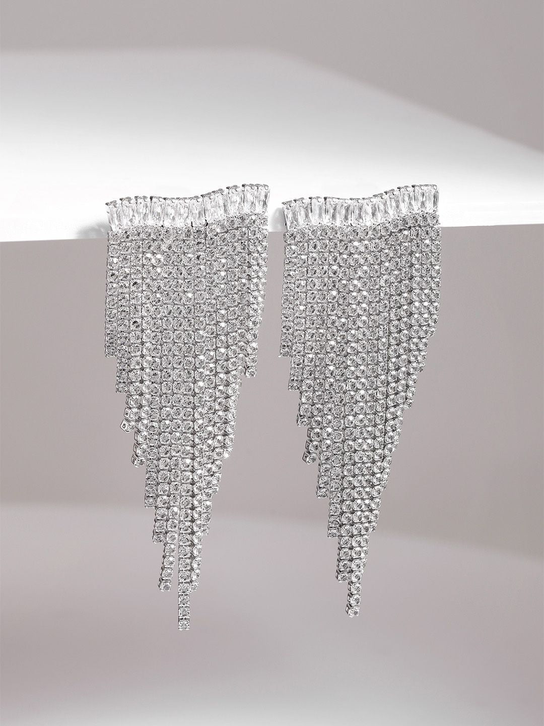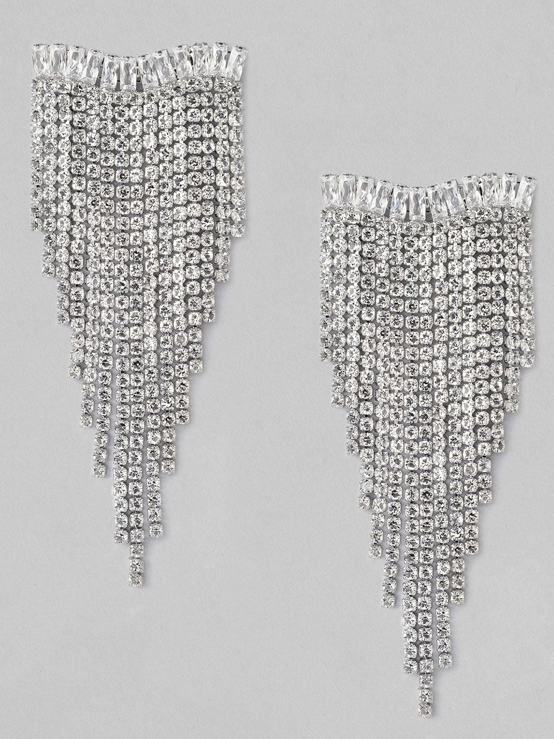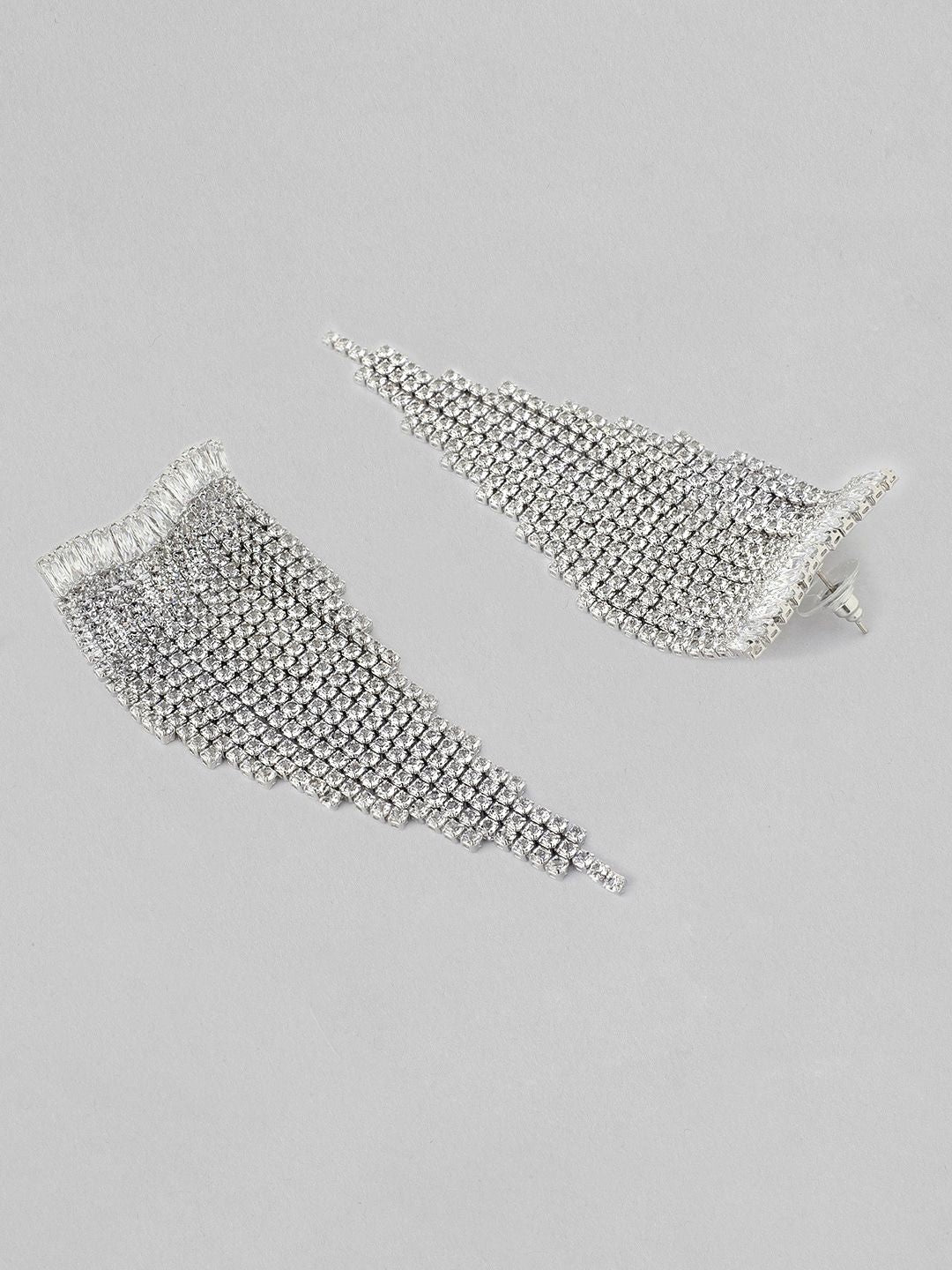 Dhiyona RJ Silver Plated Crystal & AD Studded Shoulder Duster Glamorous Earrings