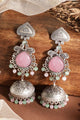 Dhiyona RJ Women's Silver-Plated Oxidised Jhumka Earrings with Pastel Pink Gemstone & Mint Green Beads