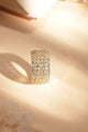 Gold-plated flexible finger ring, has white CZ stone-studded and criss-cross shaped details